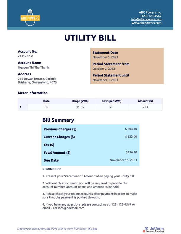 Australia ABC Power Editable Utility Bill Template – Your Solution for Proof of Address