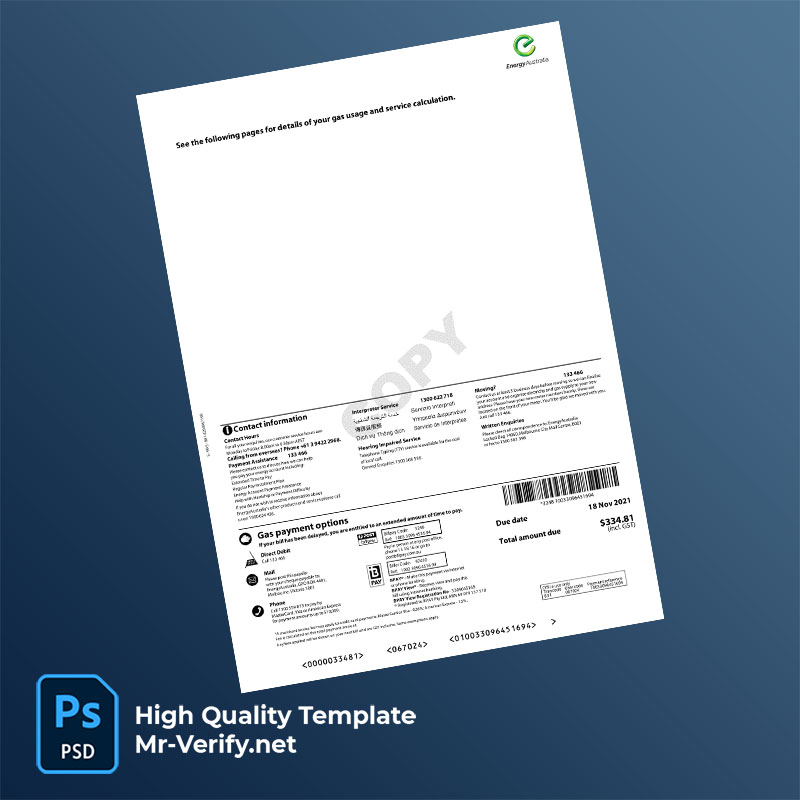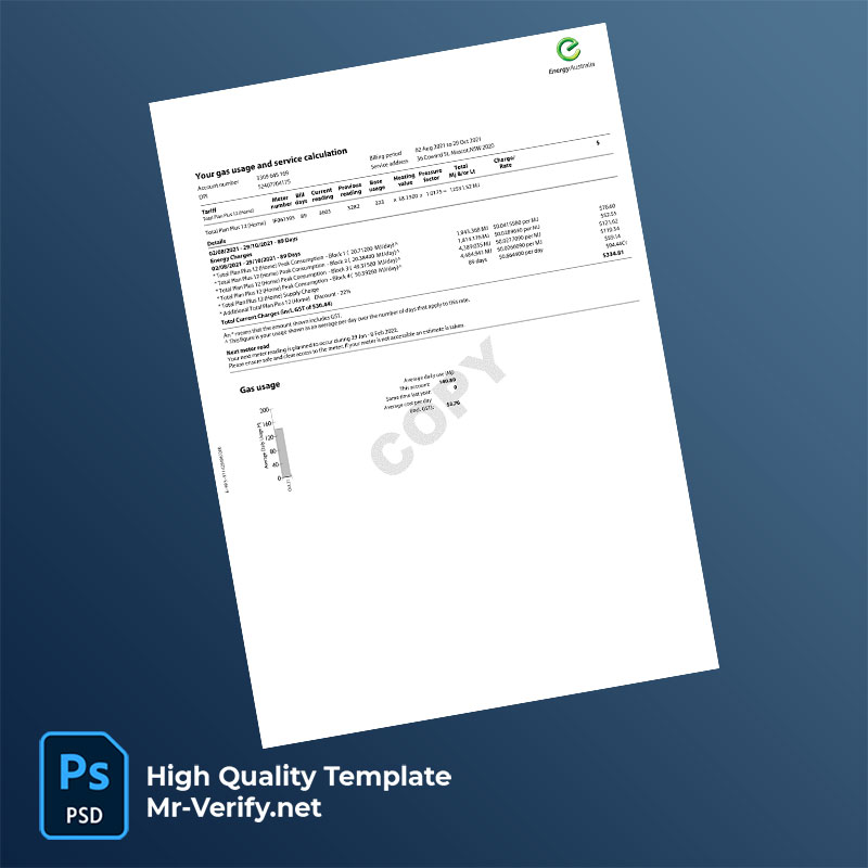 Australia EnergyAustralia Editable Gas Bill Template in Word and PDF formats