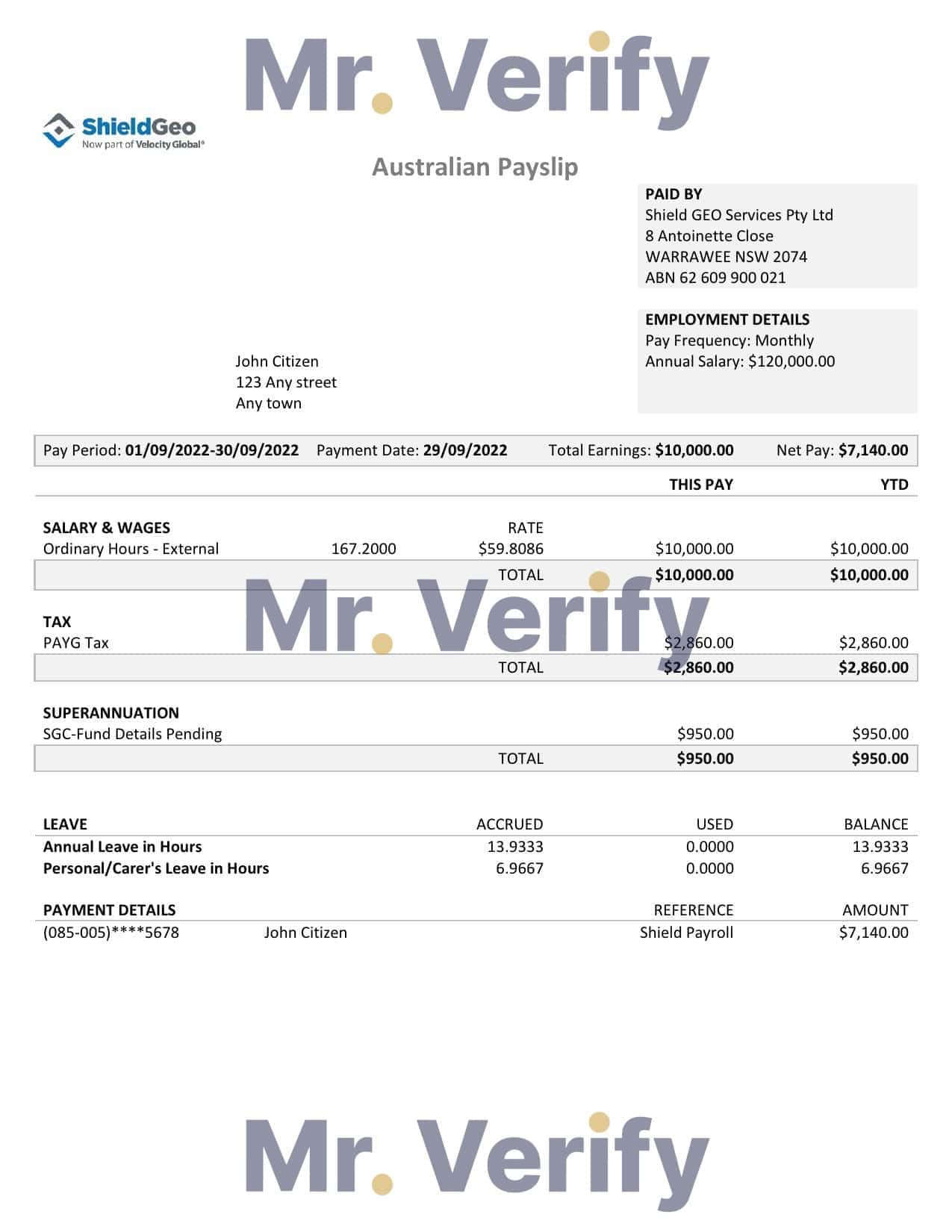 Australia Shield Geo consulting company pay stub Word and PDF template