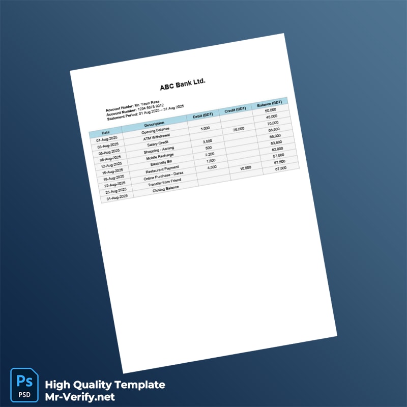Bangladesh ABC Bank Statement Template in Word and PDF Formats