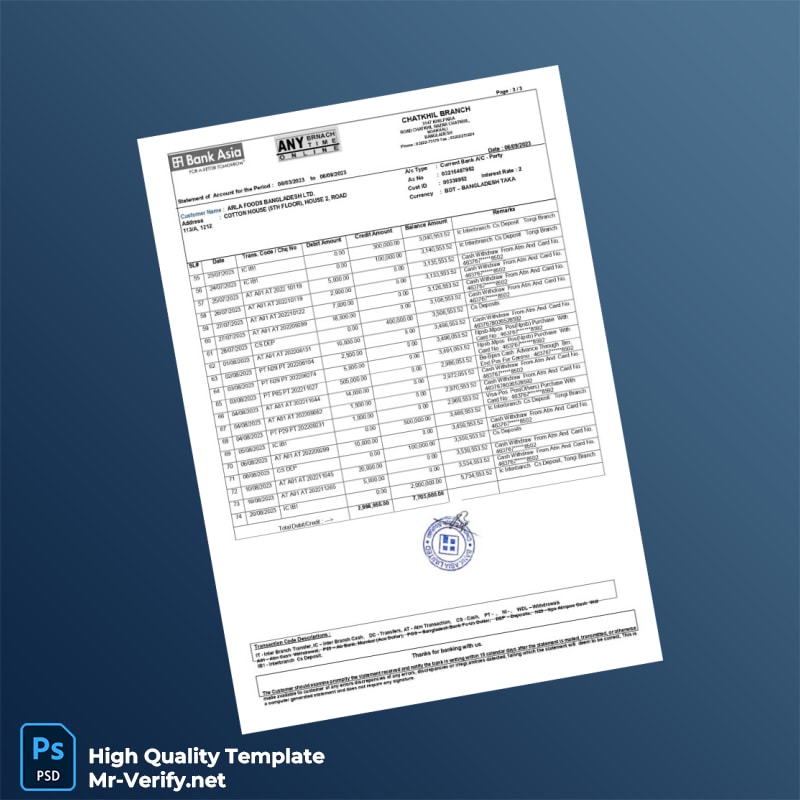 Introducing the Bangladesh Bank Asia Statement Template – a professionally crafted, editable bank statement available in both Word and PDF formats. This template is designed for professionals who need to address urgent documentation requirements efficiently and effectively.