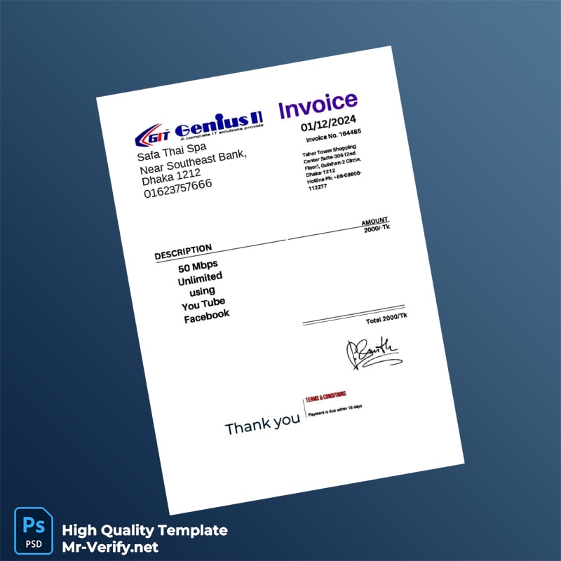Introducing the Bangladesh Dhaka Water Supply Sewerage Authority Editable Utility Bill Template, designed for professionals in need of a quick and reliable proof of address document. This fully editable utility bill template comes in both Word and PDF formats, allowing you to customize it according to your specific requirements.