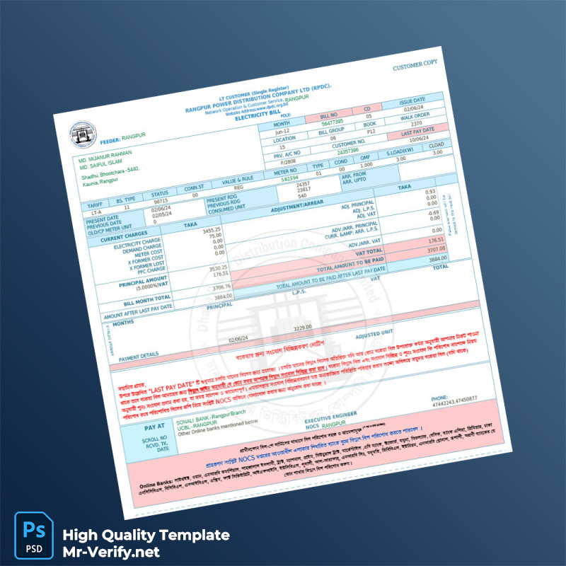 Bangladesh DPDC Editable Electricity Bill Template – Your Solution for Quick Proof of Address