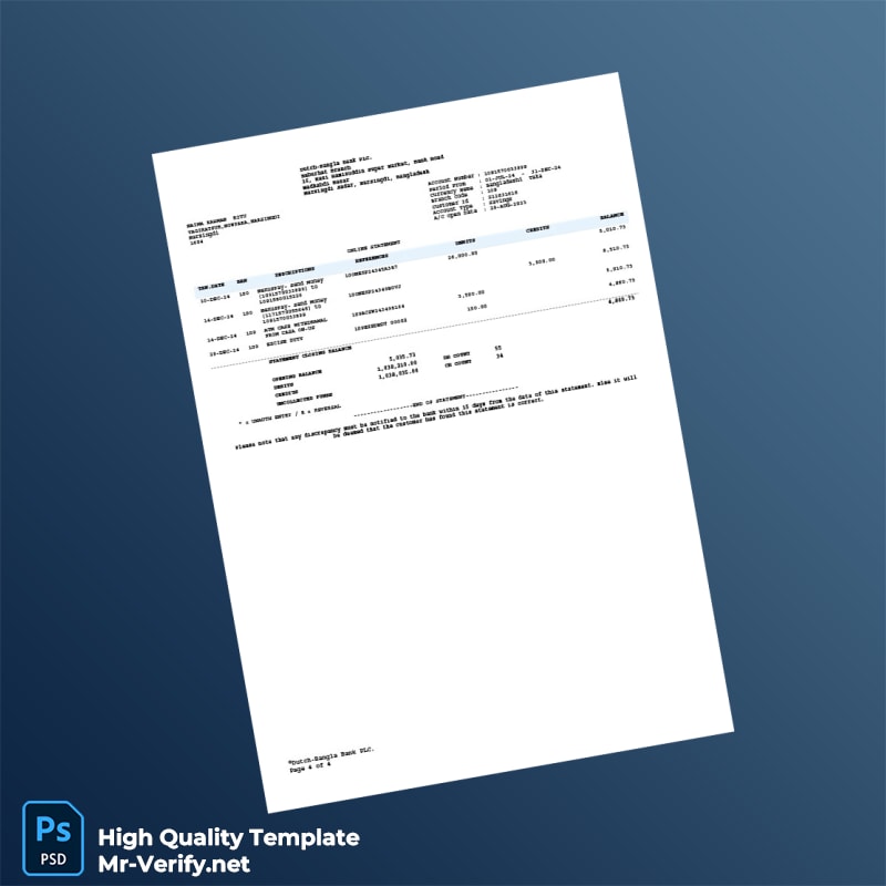 Streamline Your Financial Documentation with Our Bangladesh Dutch-Bangla Bank PLC Bank Statement Template