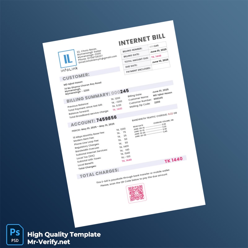 Introducing the Bangladesh InfoLink Editable Utility Bill Template, a vital resource designed to streamlining the tedious task of generating proof of address documents. Available in both Word and PDF formats, this template meets the needs of professionals requiring reliable documentation, whether for personal or business use.