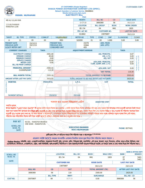 Bangladesh NOCS Editable Utility Bill Template in Word and PDF Formats