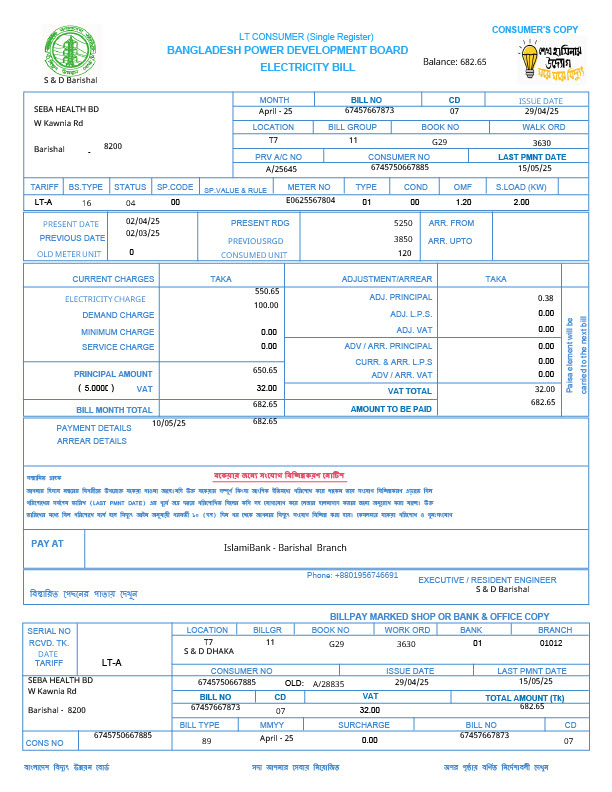 Our Bangladesh SEBA HEALTH BD utility bill template is not just an ordinary document; it offers unmatched features: