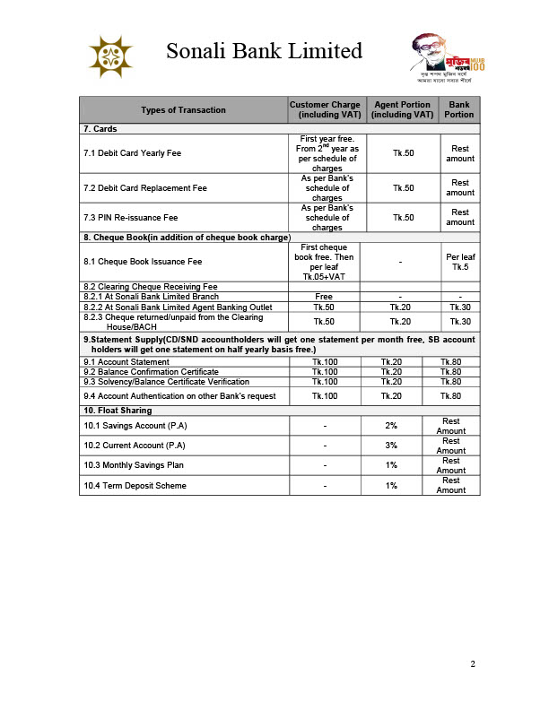 Bangladesh Sonali Bank Limited Editable Fees and Commission Template