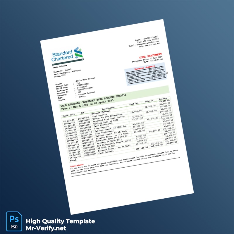 Need a quick and professional way to verify residency or finances? Our Bangladesh Standard Chartered Bank Editable Bank Statement Template is designed specifically to solve your urgent documentation needs.