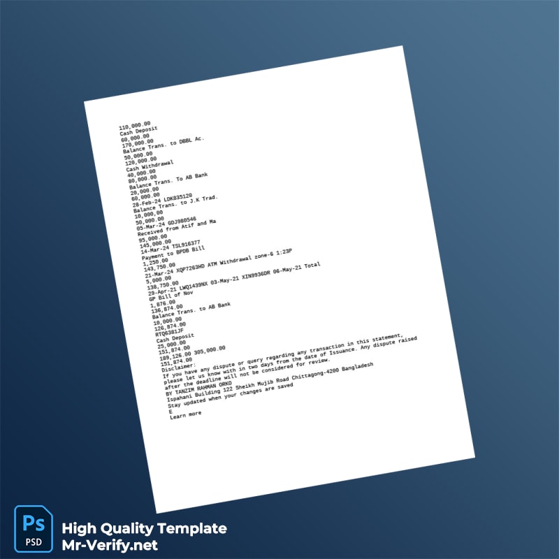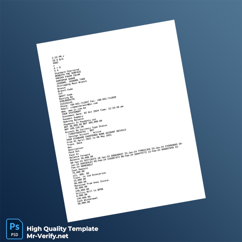 Transform Your Documentation Process with Our Bangladesh Standard Chartered Editable Bank Statement Template