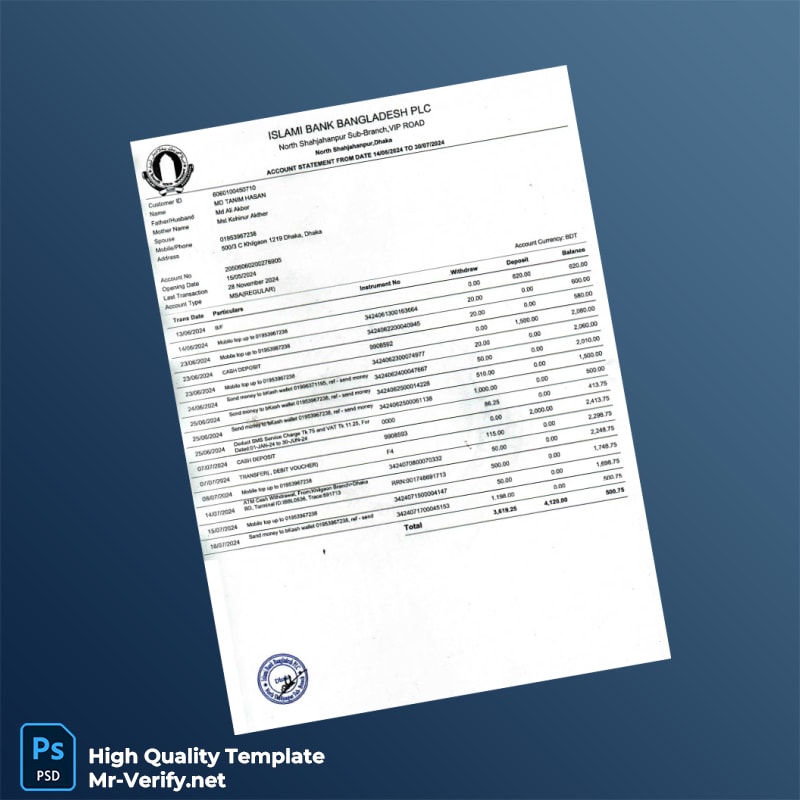 Don’t let documentation delays hinder your progress. Streamline your process and enhance your professional image with the Bangladesh Template in Word and PDF formats. Download your template today and experience the ease of quick edits and instant access that our editable bank statement can offer.