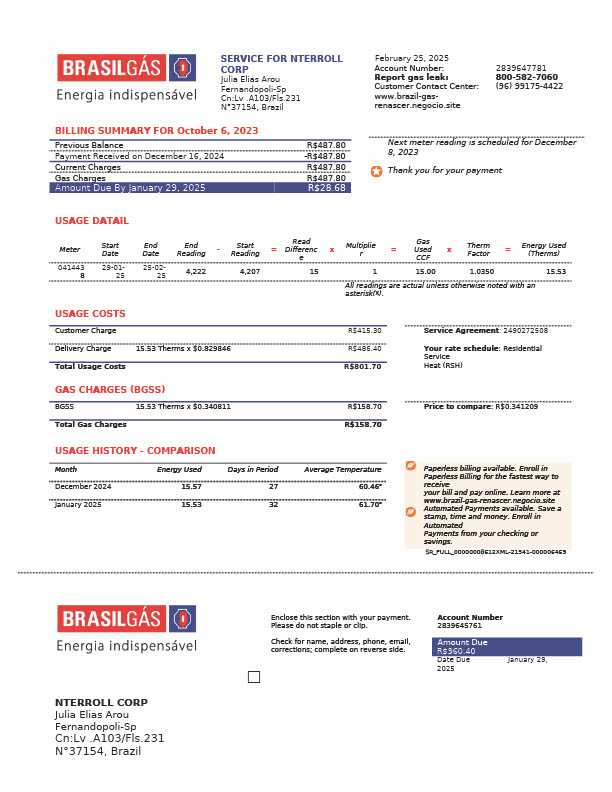 Brazil Brasildás Editable Gas Bill Template – Word and PDF Formats