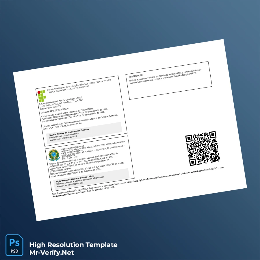 Professional Editable Diploma Template for Brazil Instituto Federal da Paraíba Técnico em Edificações