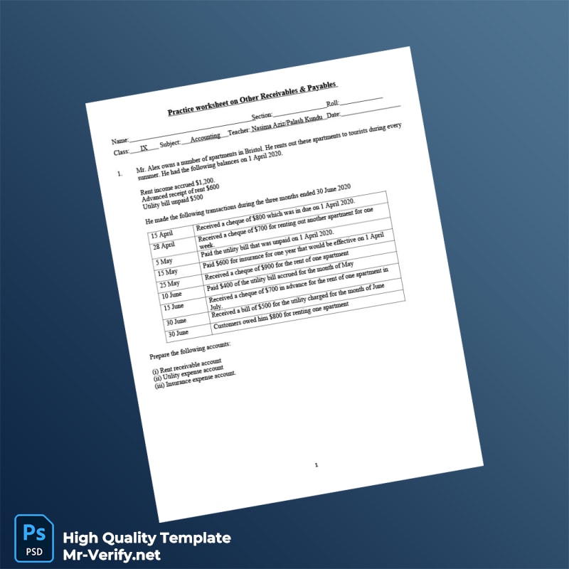 The Bristol Editable Practice Worksheet On Other Receivables Payables Template is your essential tool for generating reliable proof of address documents quickly and effortlessly. Whether navigating a sudden documentation issue or needing a template for business use, our product is designed to meet professionals’ demands globally.