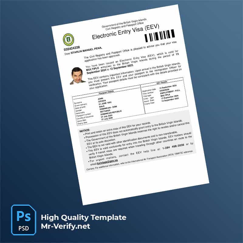- British Virgin Islands eVisa in PSD, Word, and PDF formats
