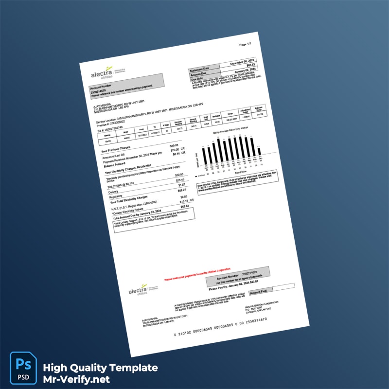 Canada Alectra Utilities Editable Electricity Bill Template in Word and PDF formats is your go-to solution for quick and hassle-free proof of address documentation. Designed for professionals who need a reliable utility bill template, this customizable resource is perfect for those who have lost important documents or require replacements swiftly.