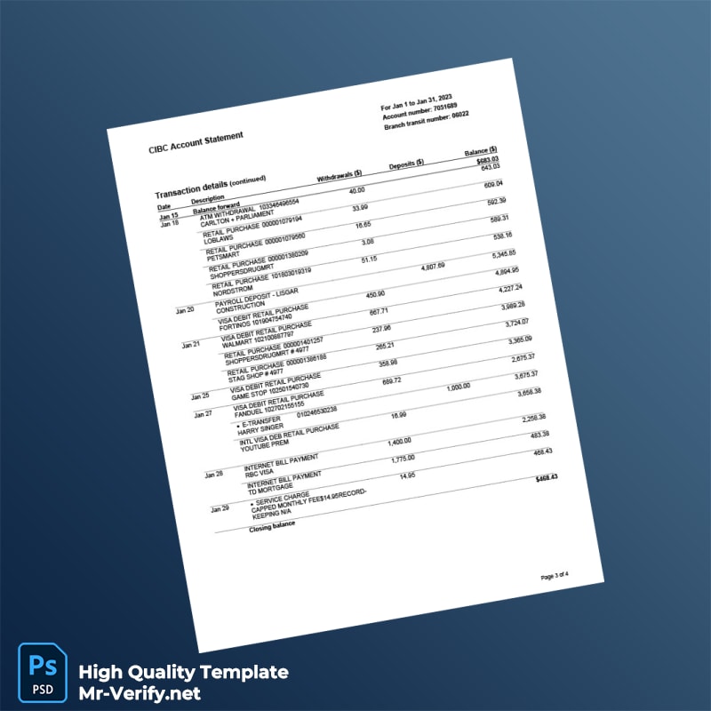 Canada CIBC Account Statement Template in Word and PDF formats 4 page
