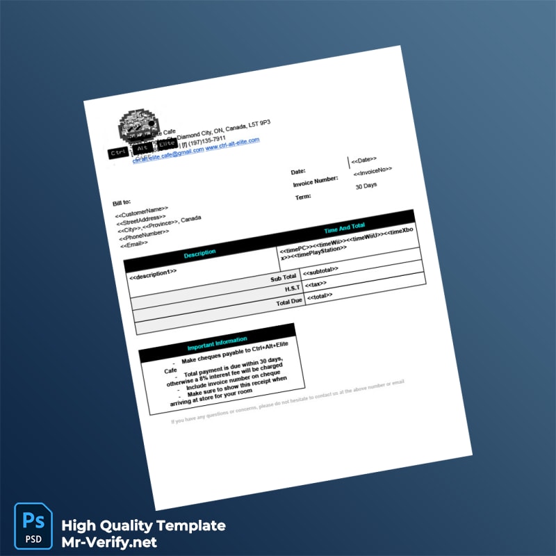 Canada Ctrl Alt Elite Cafe Invoice Template in Word and PDF Formats