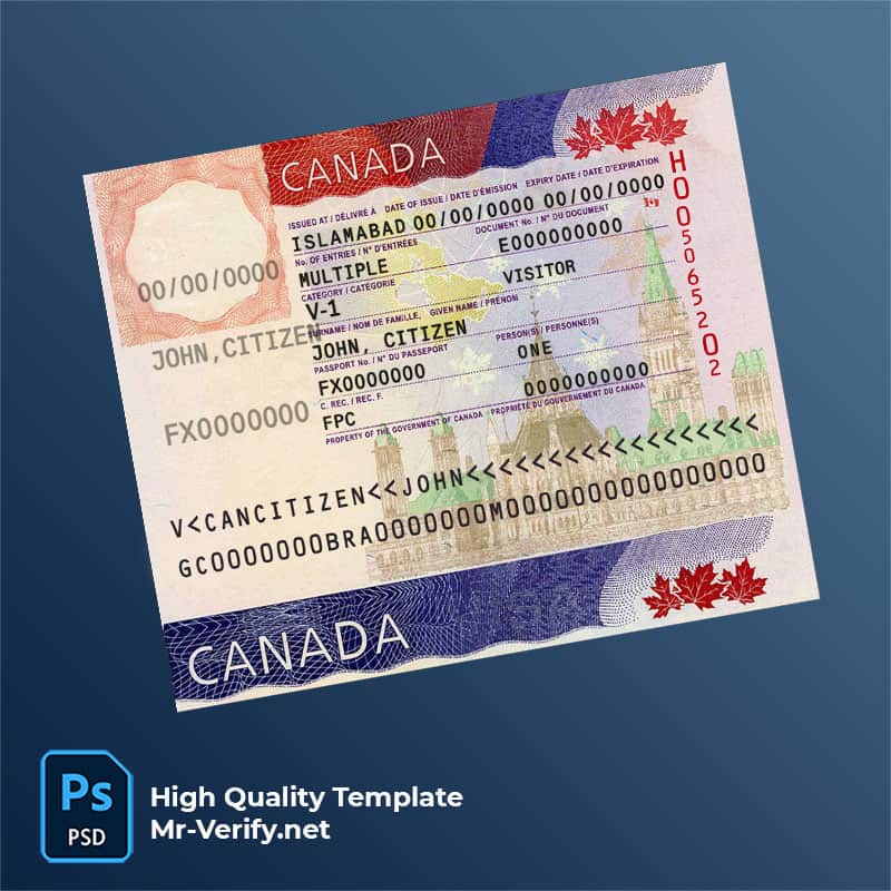 - Identity Verification: Commonly used for trade sites, payment services, and digital currency platforms requiring identity proof. This editable Canada visa PSD download is designed for such scenarios.