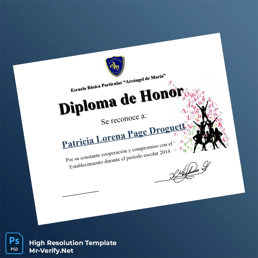 The Chile Escuela Básica Particular Arcángel de María Honor Diploma Template is a high-resolution, print-ready certificate designed for seamless customization by educational institutions and professionals. Crafted with precision, this editable diploma template offers layered Word and PDF files ensuring effortless modification of all essential details such as names, dates, and honors, while maintaining the certificate’s elegant traditional layout.