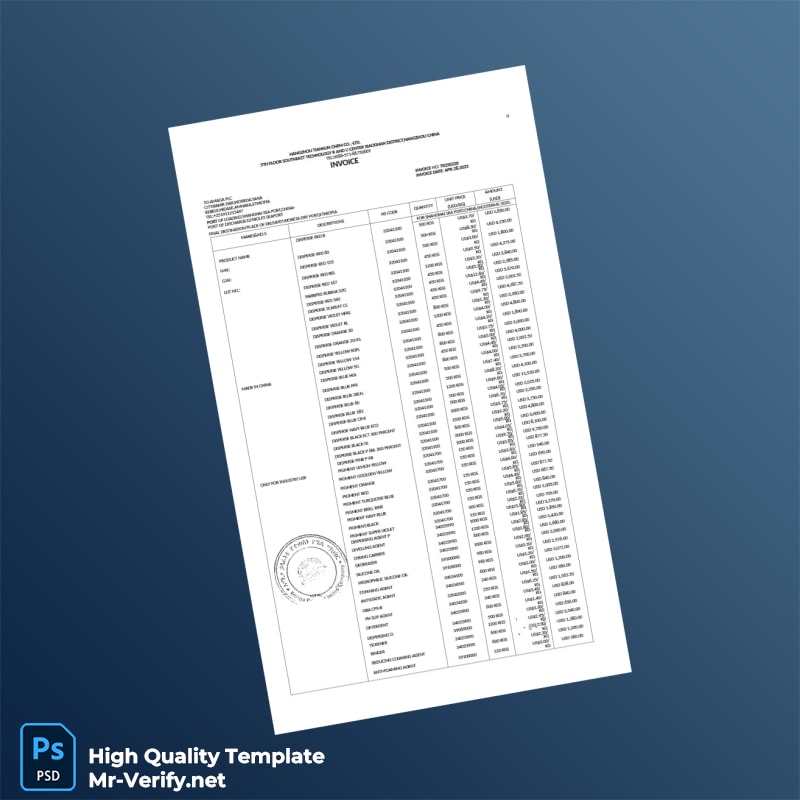 Streamline your billing process with the China Hangzhou Tianjun Chem Co Ltd Invoice Template, available in both editable Word and PDF formats. Designed for professionals across industries, this template simplifies invoice creation, enabling quick and accurate bill generation that meets international business standards.