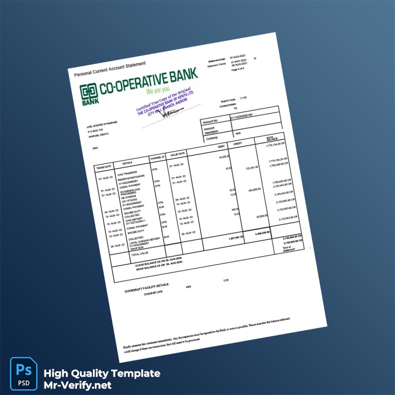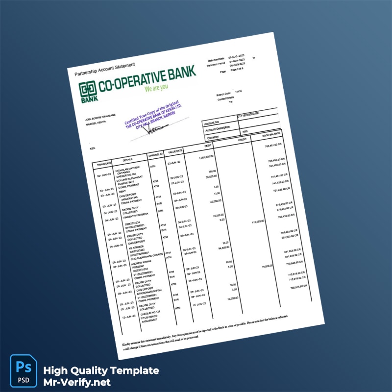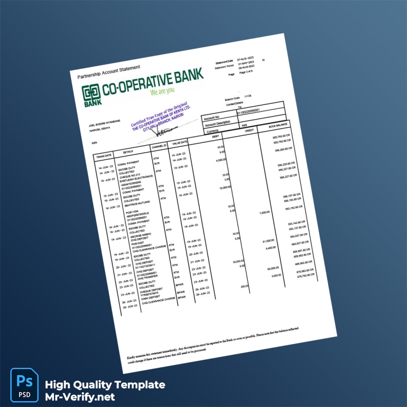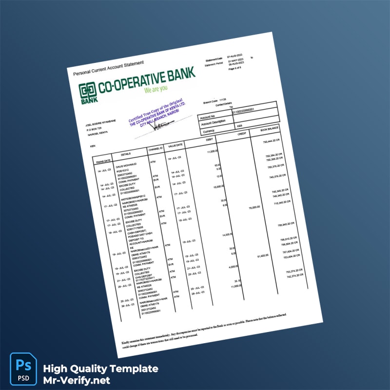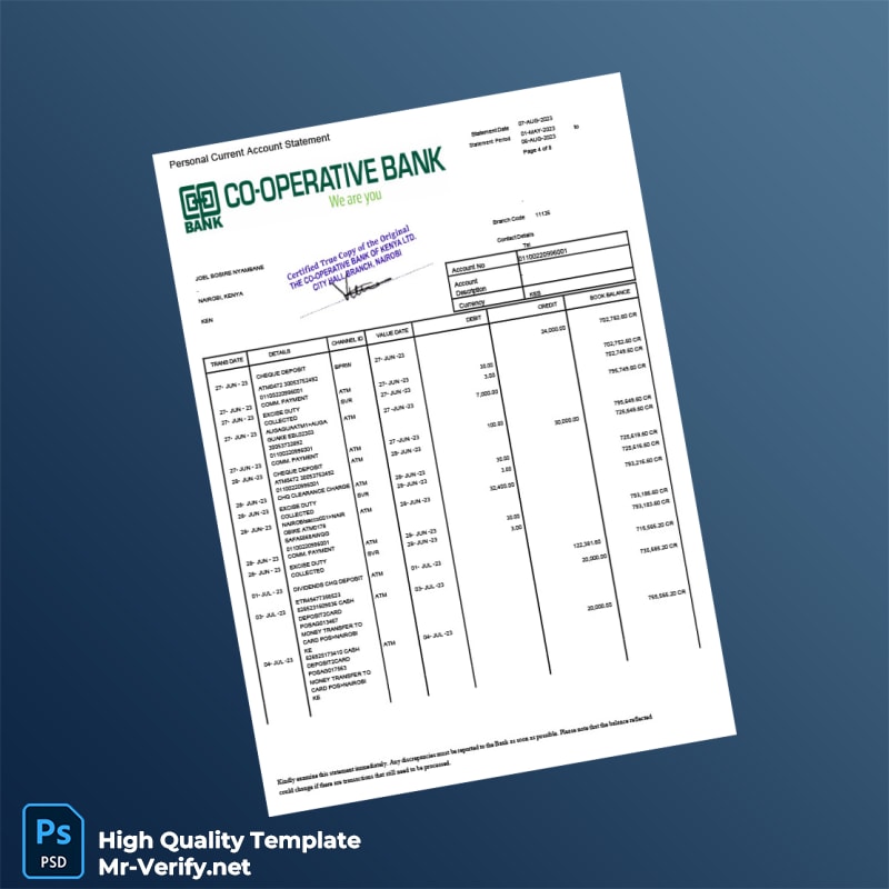 Coop Kenya Co-operative Bank Statement Template in Word and PDF Formats