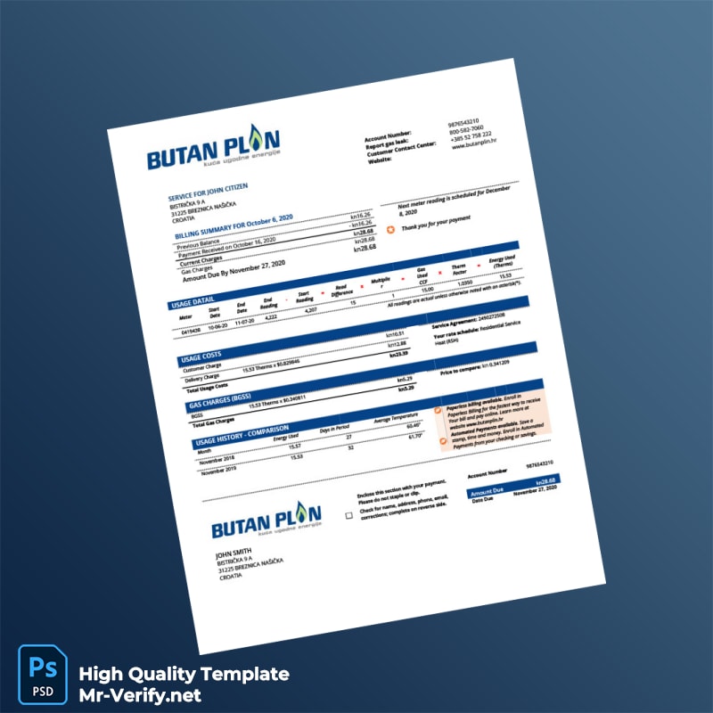 Discover the Croatia Butan Plin d o o Editable Gas Utility Bill Template, your ultimate solution for quick and convenient address verification. Perfect for professionals needing reliable documentation for leasing agreements, loans, or identification verification, this versatile template alleviates the hassles of lost or expired utility bills.