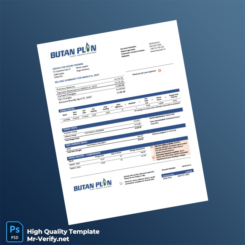 Are you struggling to present a valid proof of address? The Croatia BUTAN PLIN D o o Editable Gas Utility Bill Template is designed specifically for professionals who demand efficiency and accuracy in their documentation. With our editable utility bill proof of address template, you can easily meet verification requirements without the stress of complicated procedures.