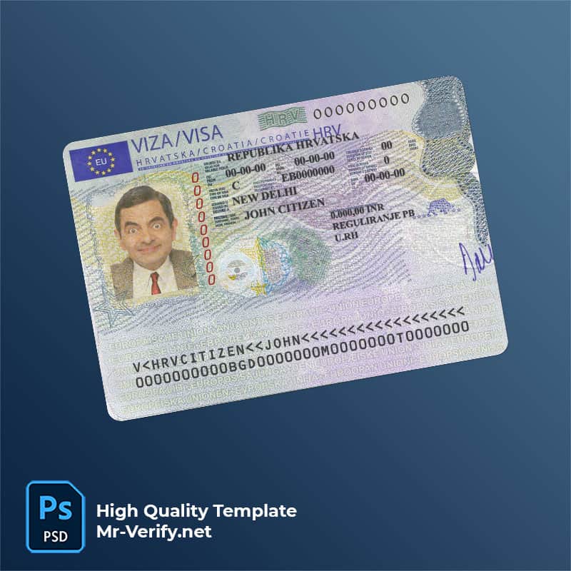 Croatia Visa PSD Template | 18+ | PSD | Yes | Yes | Download Croatia Visa PSD |