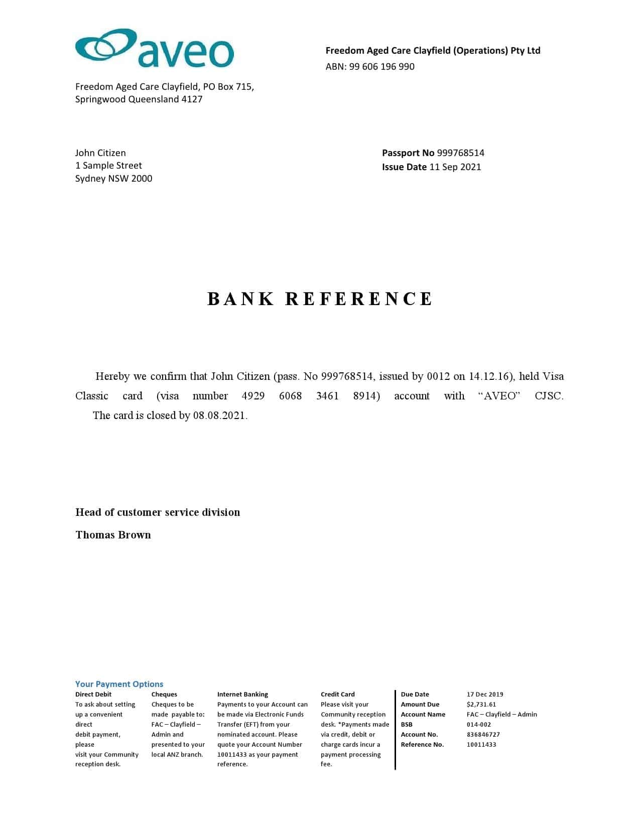 Download Australia Aveo Bank Reference Letter Templates | Editable Word