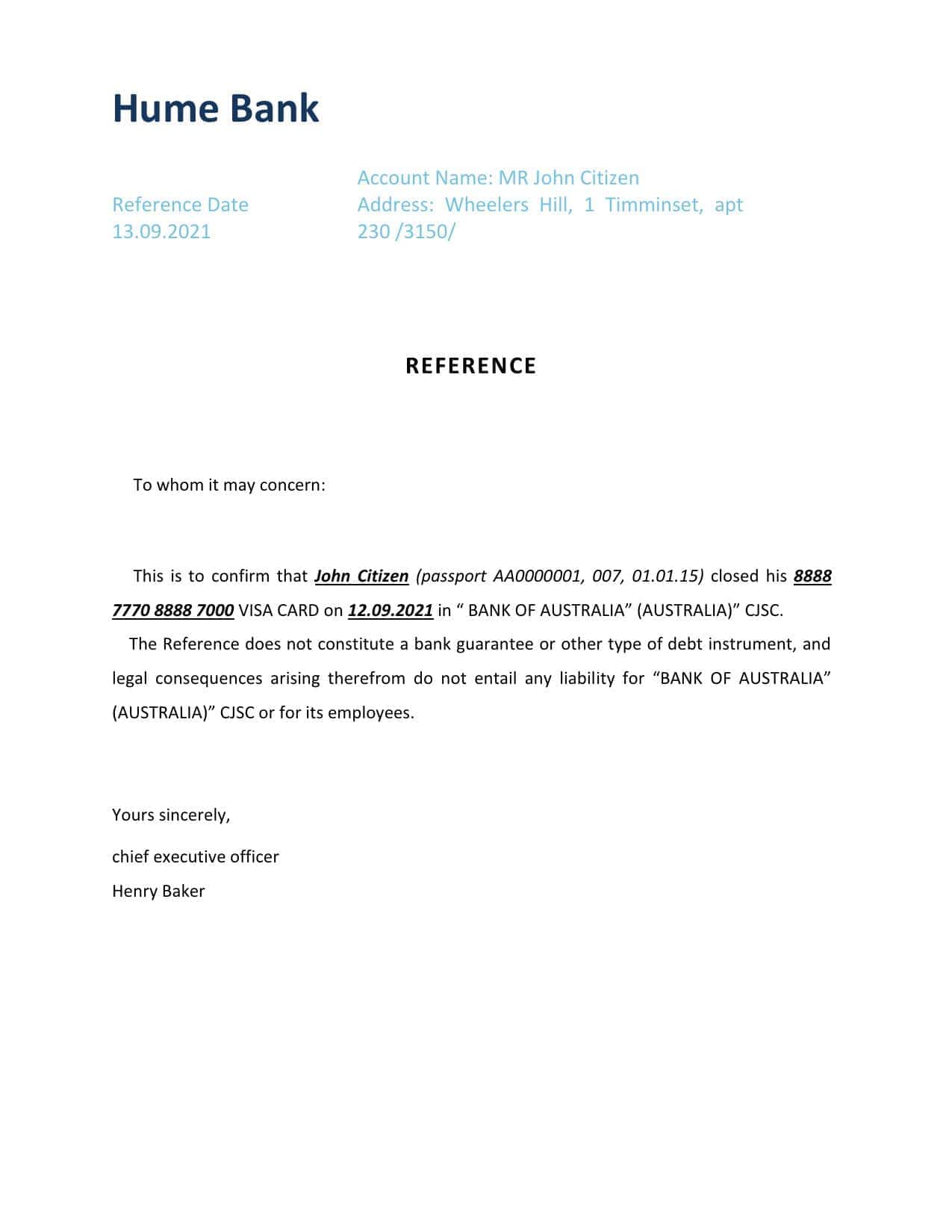 Download Australia Hume Bank Reference Letter Templates | Editable Word
