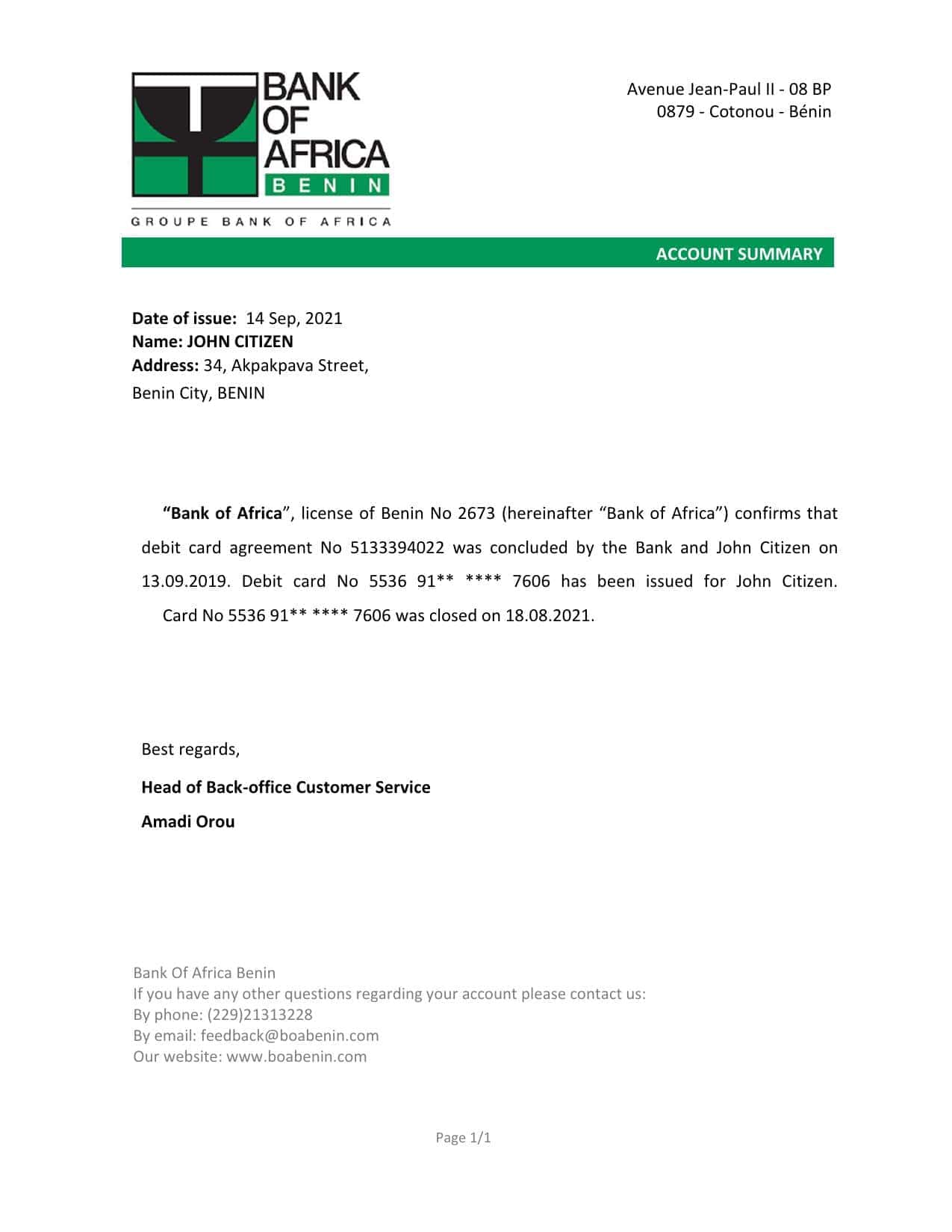 Benefits of Using Editable Benin Bank of Africa Bank Reference Letter