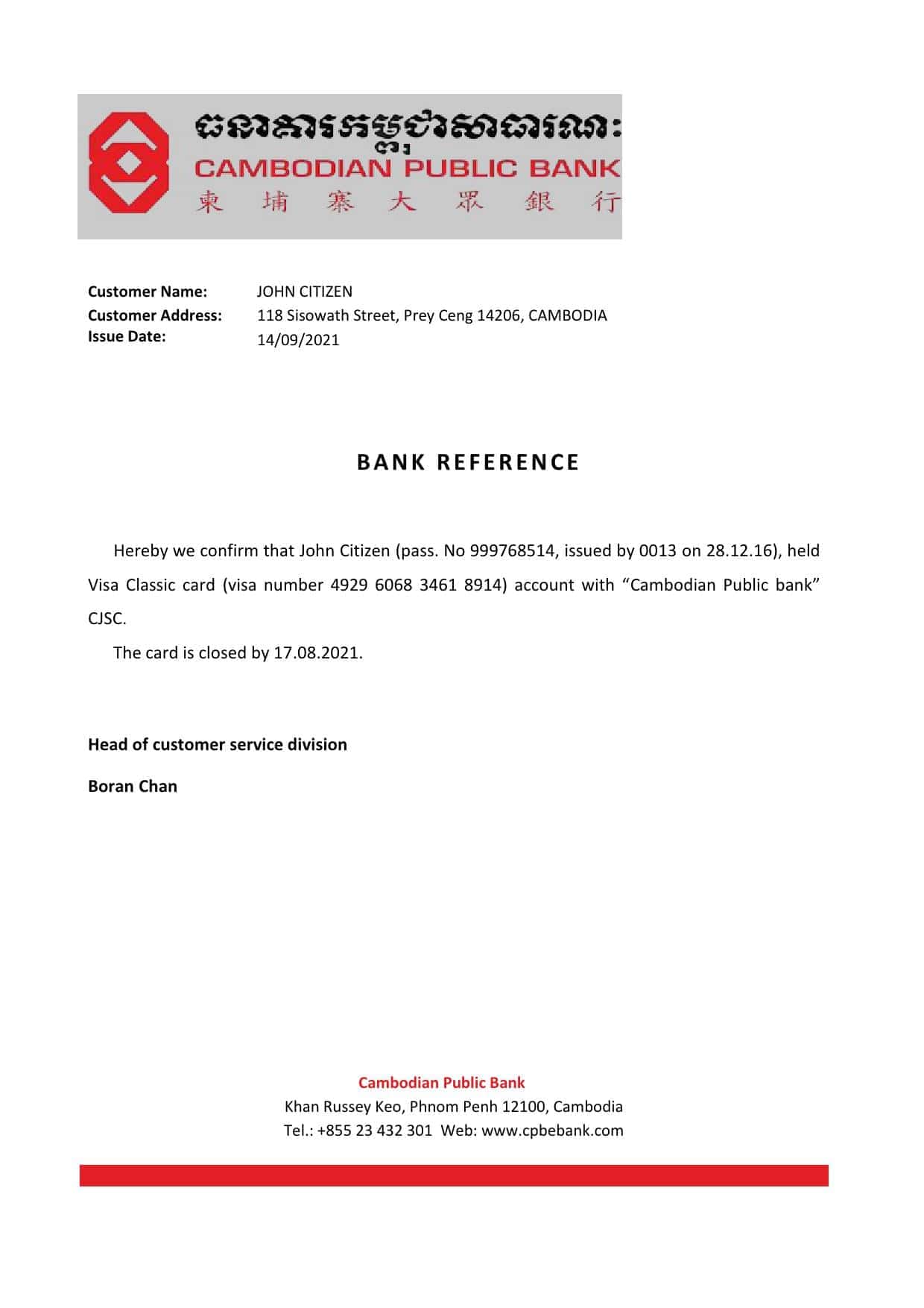 Benefits of Using Editable Cambodia Cambodian Public Bank Reference Letter