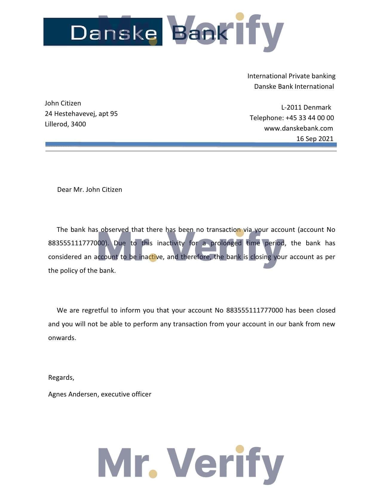 Download Denmark Danskebank Bank Reference Letter Templates | Editable Word
