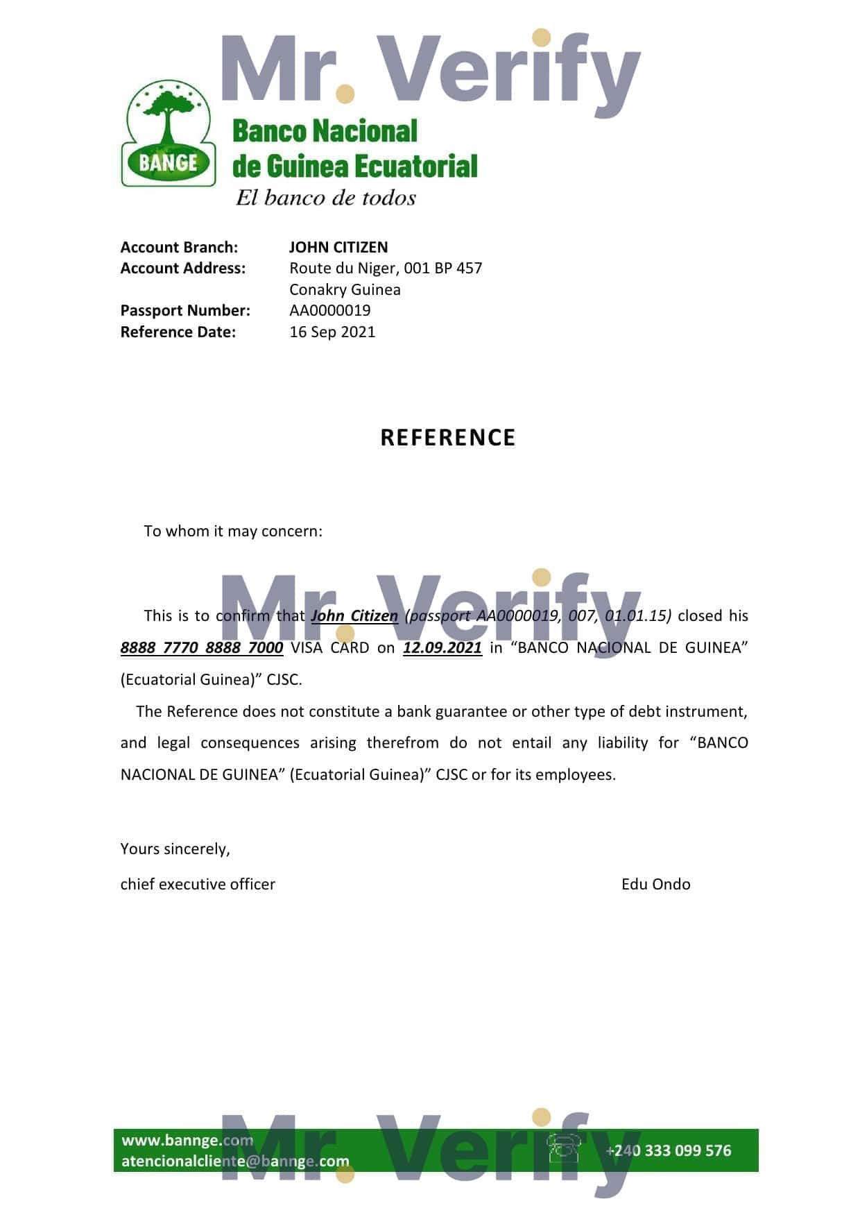 Download Equatorial Guinea The National Bank Reference Letter Templates | Editable Word