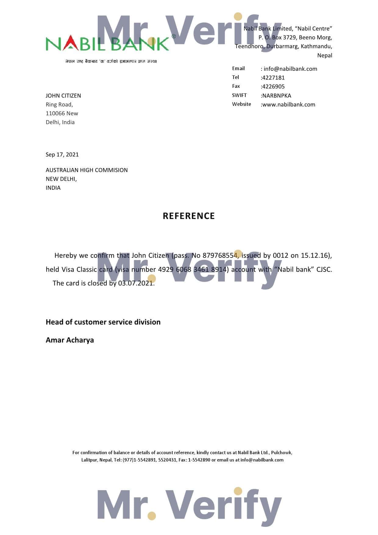 Download India Nabil Bank Reference Letter Templates | Editable Word