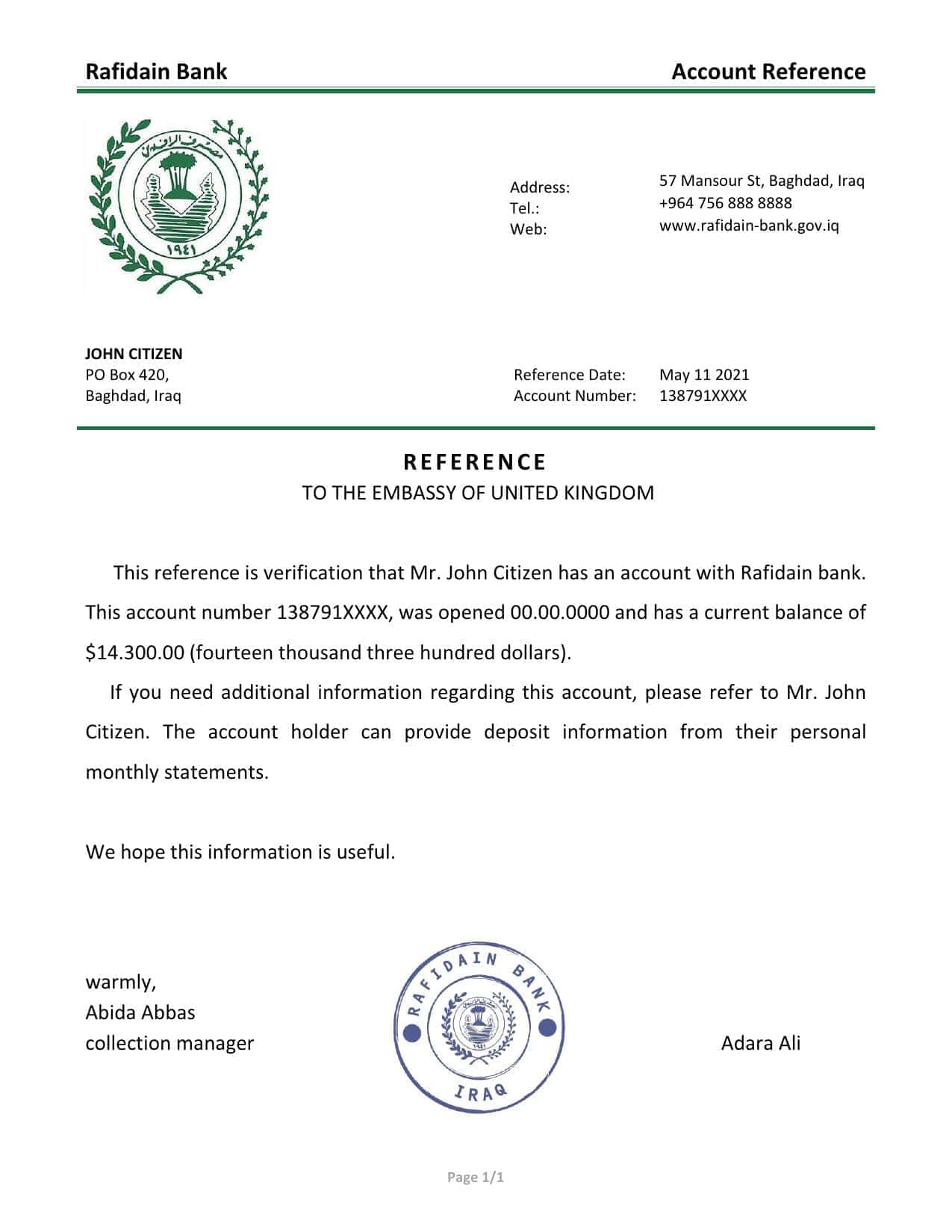 Download Iraq Rafidain Bank Reference Letter Templates | Editable Word