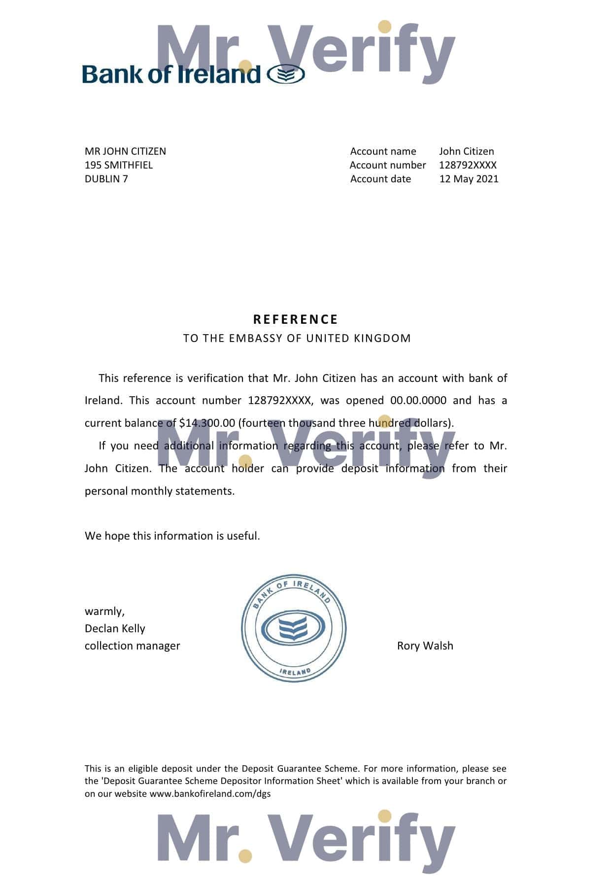 Benefits of Using Editable Ireland Bank of Ireland account balance Bank Reference Letter
