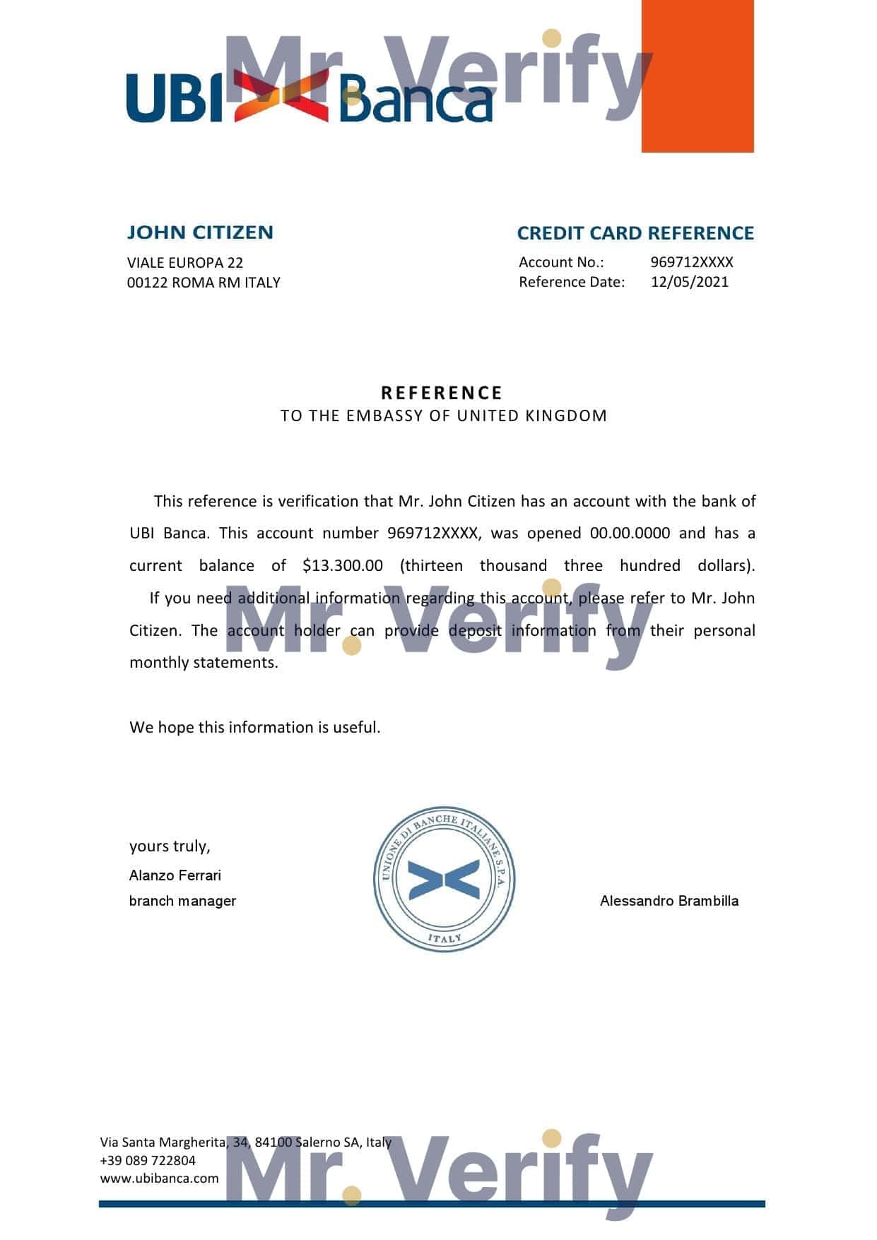 Download Italy UBI Bank Reference Letter Templates | Editable Word