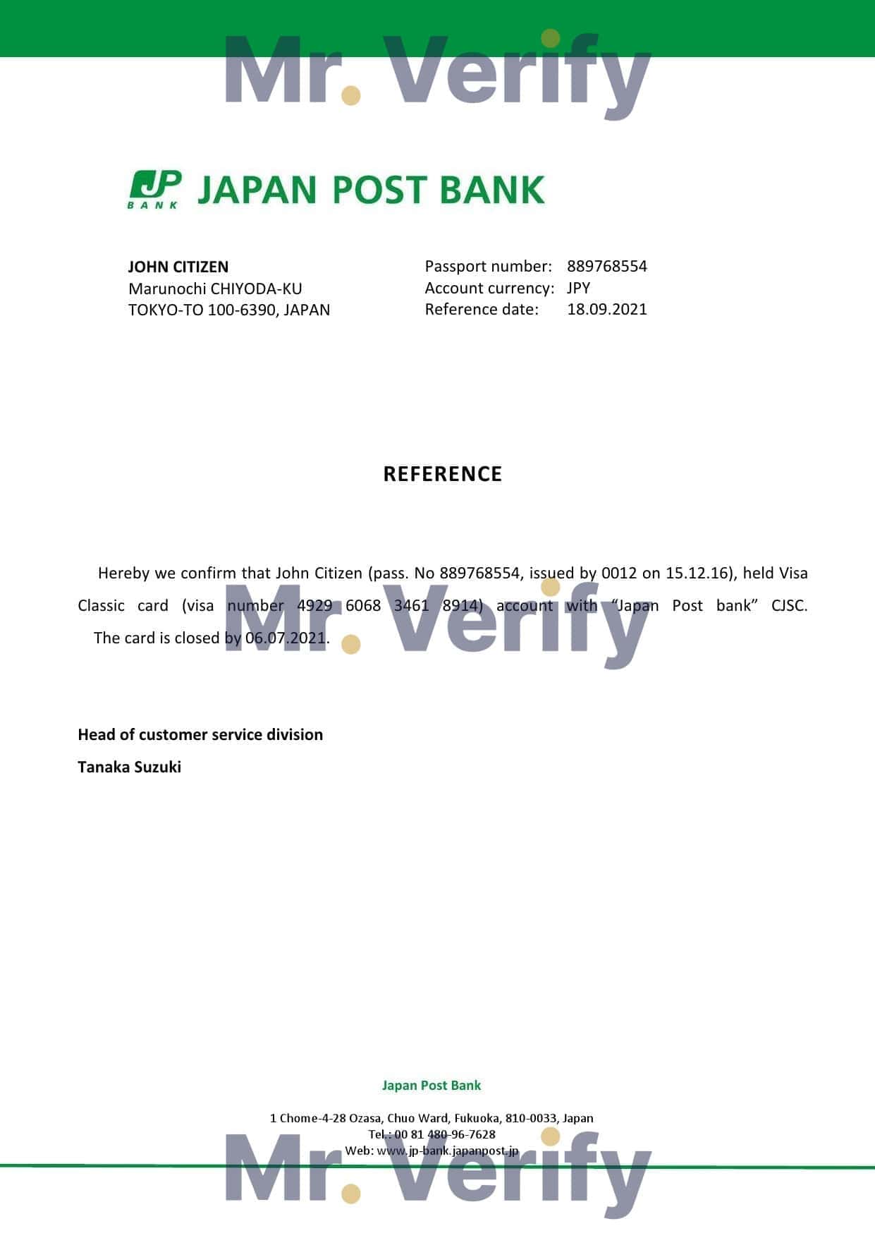 Download Japan Post Bank Reference Letter Templates | Editable Word