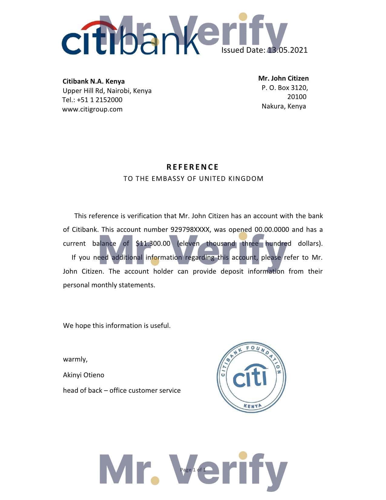 Benefits of Using Editable Kenya Citibank Bank Reference Letter