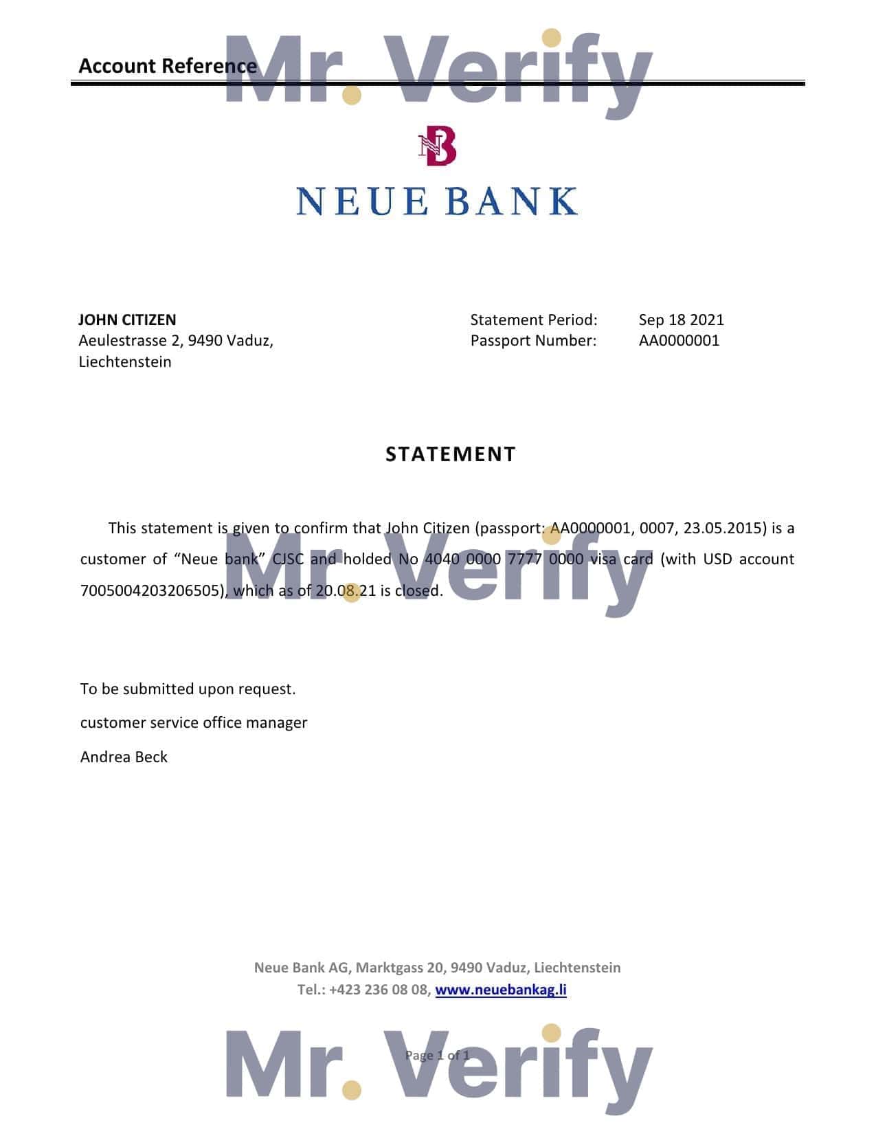 Download Liechtenstein Neue Bank Reference Letter Templates | Editable Word