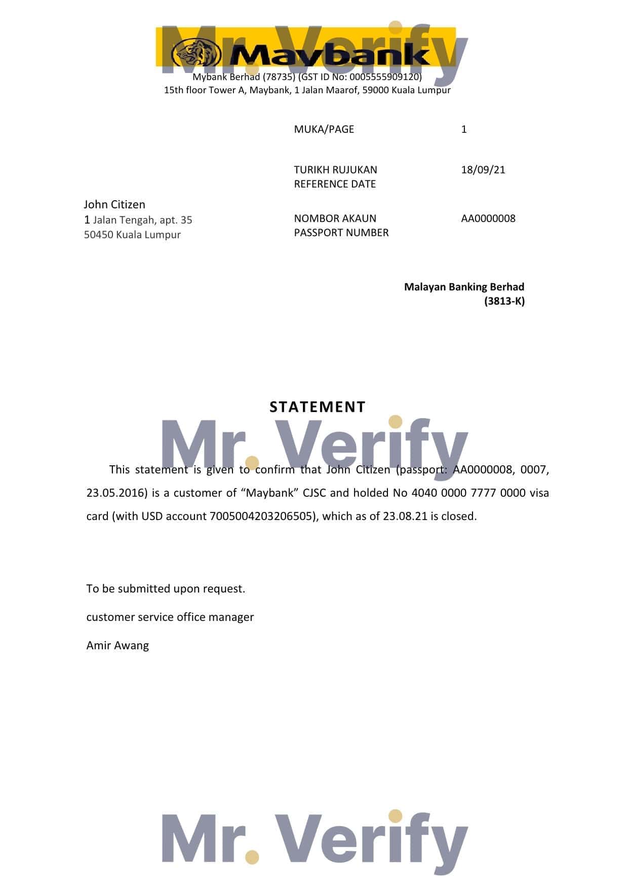 Download Malaysia Maybank Bank Reference Letter Templates | Editable Word