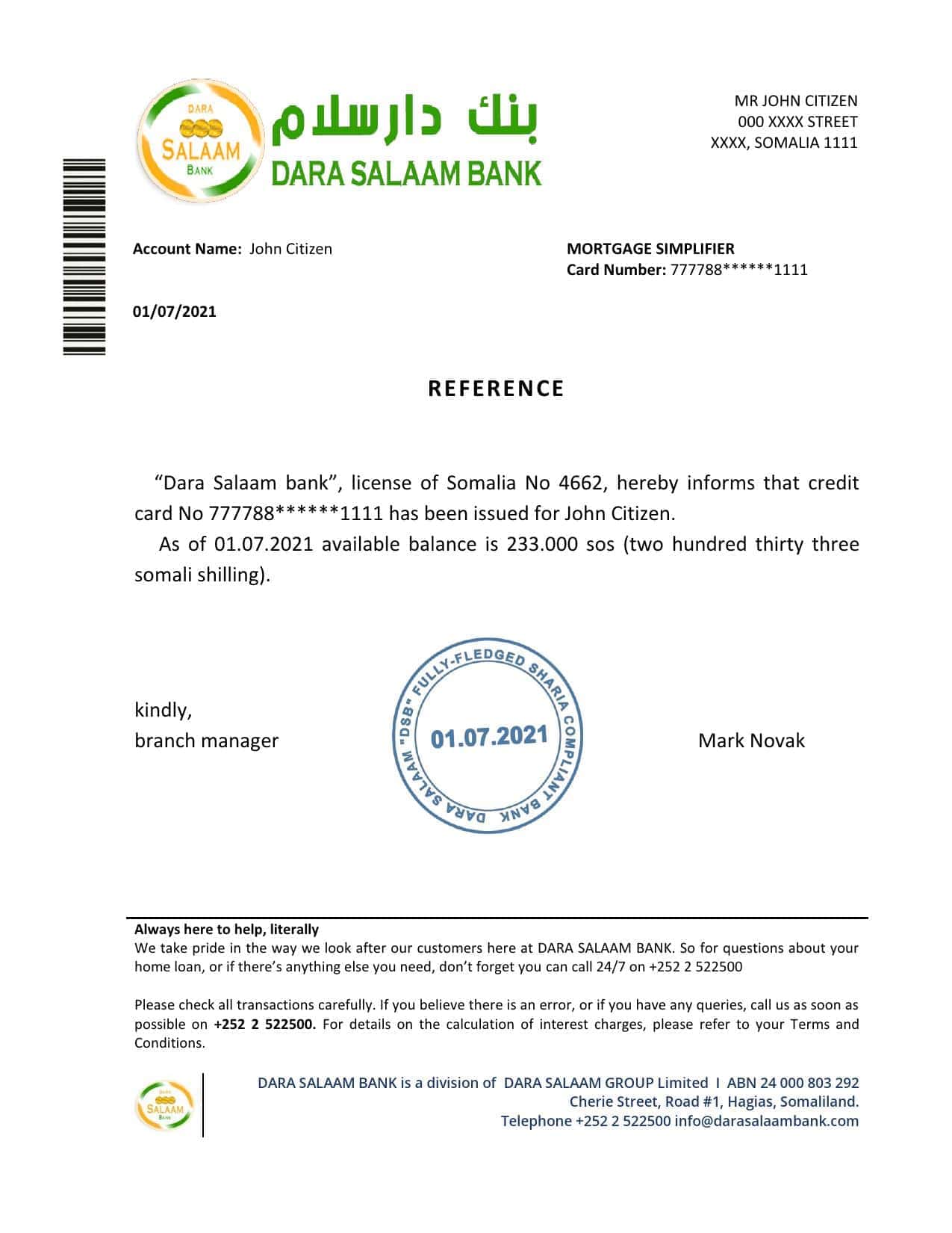 Benefits of Using Editable Somalia Dara Salaam Bank Reference Letter
