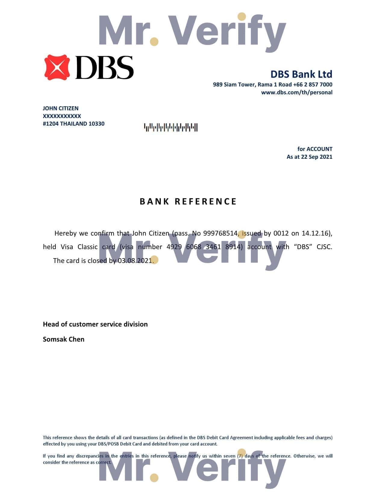 Download Thailand DBS Bank Reference Letter Templates | Editable Word