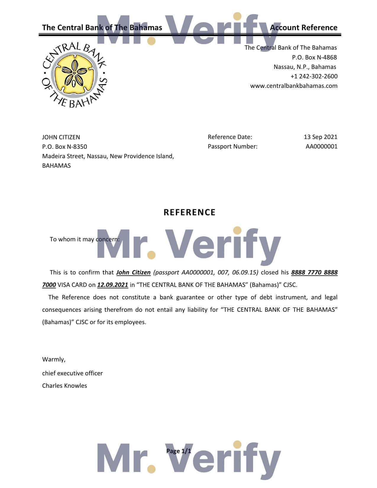Download The Bahamas The Central Bank of The Bahamas Bank Reference Letter Templates | Editable Word