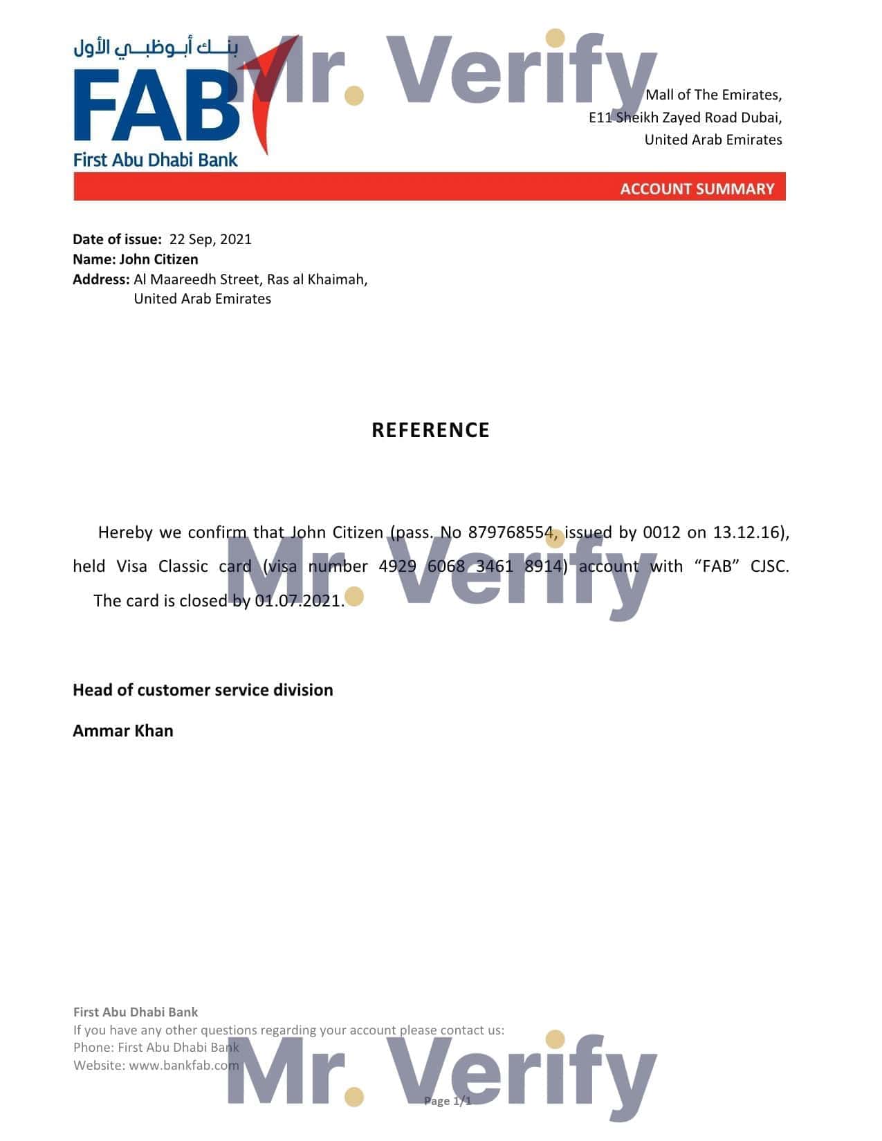 Download UAE FAB Bank Reference Letter Templates | Editable Word