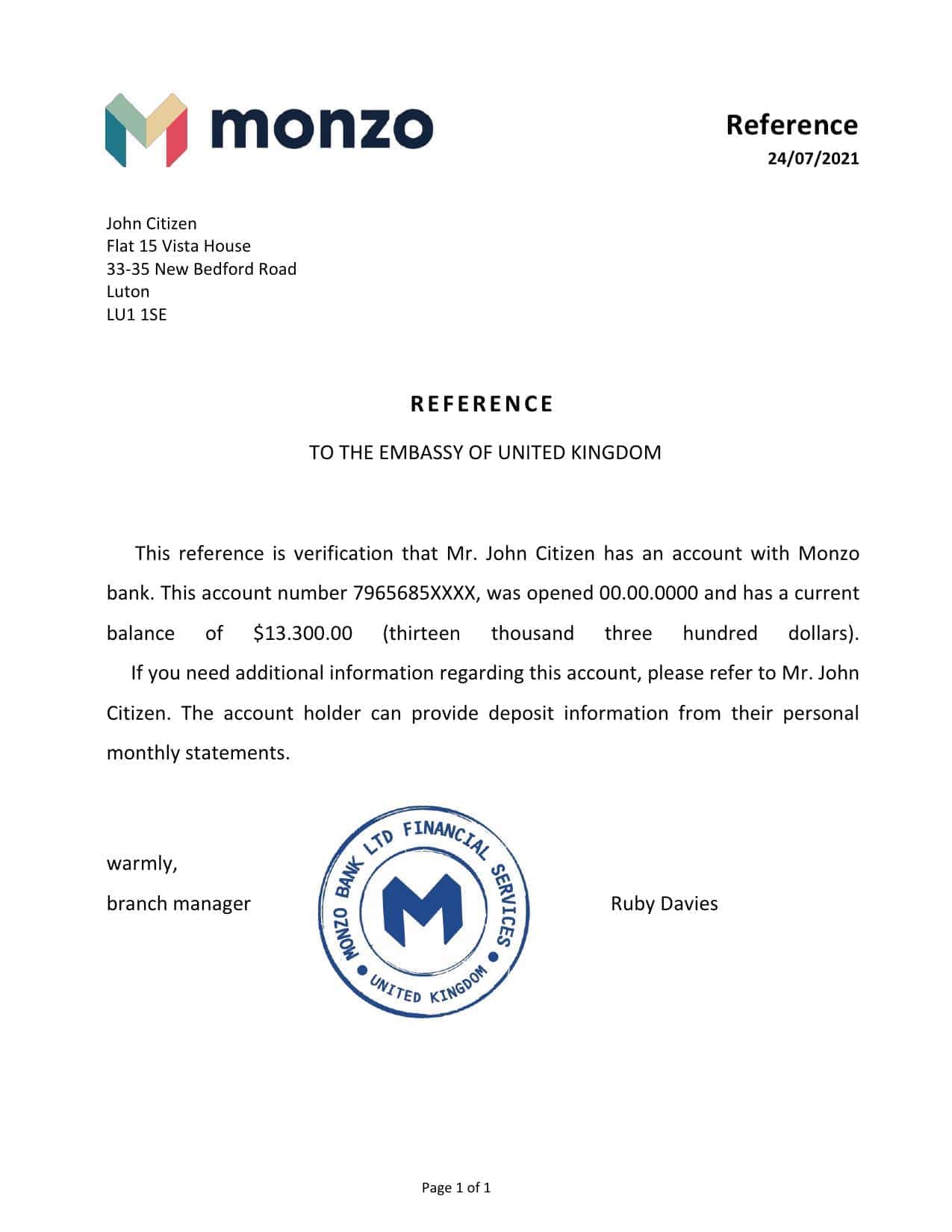 Benefits of Using Editable United Kingdom Monzo Bank Reference Letter