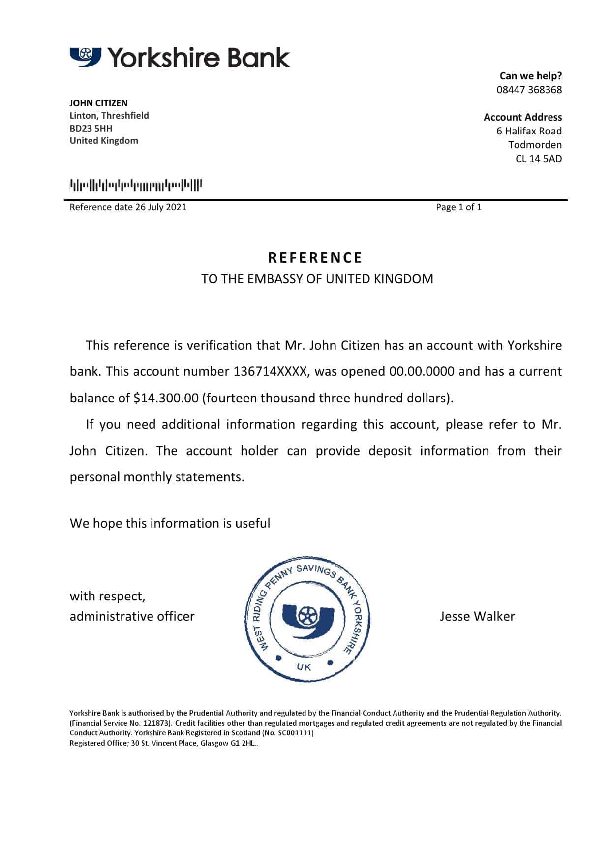 Benefits of Using Editable United Kingdom Yorkshire Bank Reference Letter
