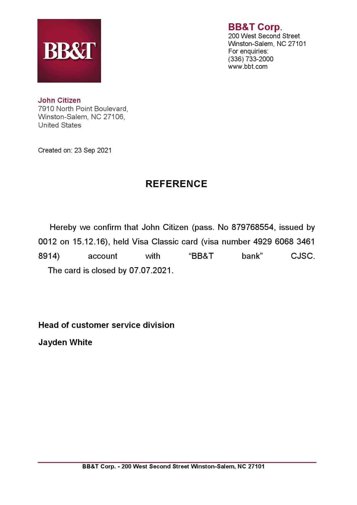 Benefits of Using Editable USA BB&T Bank Reference Letter